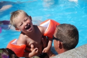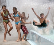 Wenn Sie bei uns übernachten, haben Sie freien Zugang zu unserem großen, solarbeheizten Wasserpark mit 4 Becken und einem 35 Meter langen Surf-Hill. Hier gibt es sowohl ein Babybecken, ein Kinderbecken als auch ein Schwimmbecken.