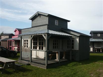 Die Hütten sind in grauen und braunen Nuancen gestrichen und wie ein echter Saloon gestaltet, mit Saloon-Türen und allem Drum und Dran.