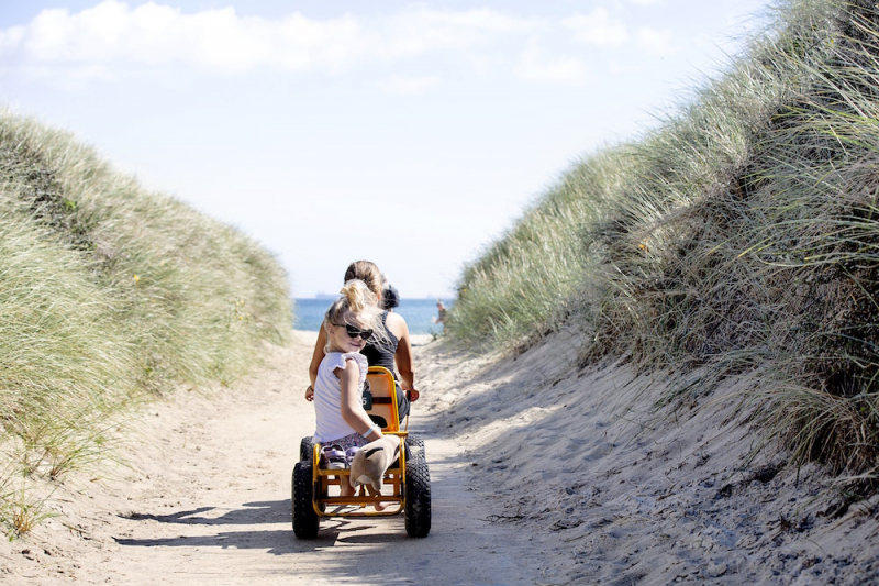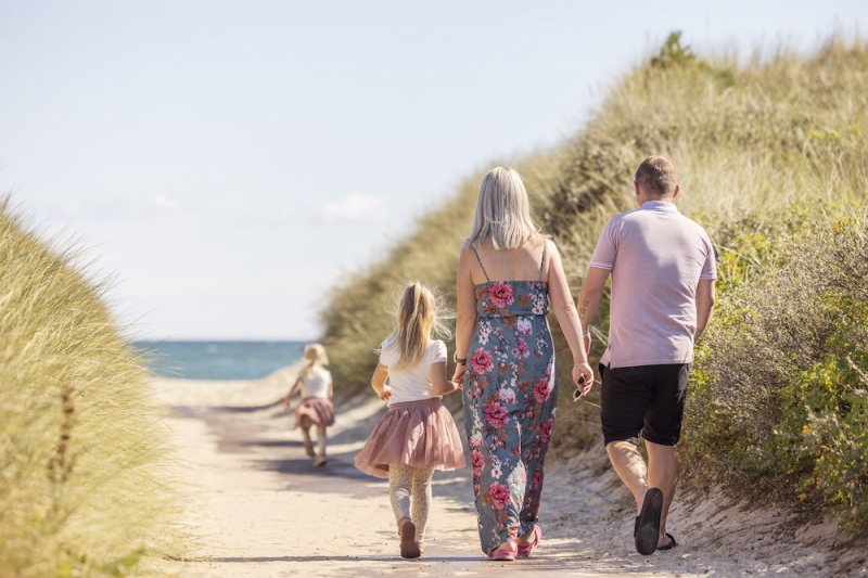 Der kinderfreundliche Sandstrand und die Dünen laden zum Spielen und Spazierengehen ein, und das Meer bietet Badespaß für Groß und Klein. Die Bunken Klitplantage bietet schöne Wanderwege und die Råbjerg Mile ist zu Fuß erreichbar. Die Umgebung bietet viele Möglichkeiten für Radtouren, unter anderem nach Skagen, an die Westküste, nach Kandestederne und zum Adlerreservat.