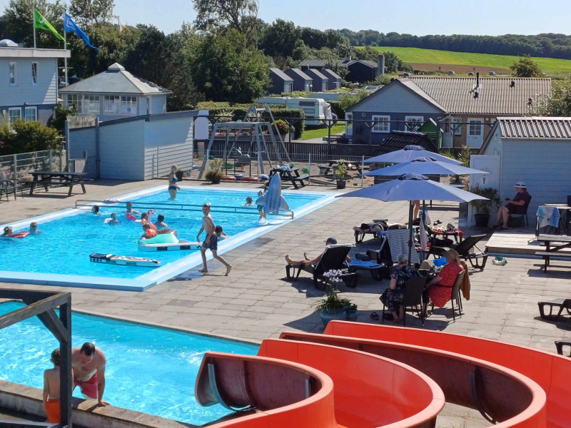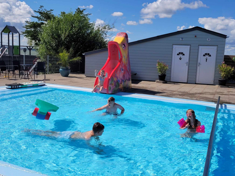• Gemütlicher neuer beheizter Außenpool mit 2 Abteilungen und zwei 18 Meter langen Wasserrutschen