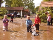 Auf dem Spielplatz können sich die Kinder mit Sandkasten, Klettergerüst, Schaukeln und Rutsche austoben – und die beiden Hüpfkissen werden schnell zum natürlichen Treffpunkt. Im Café können Sie Materialien für Naturaktivitäten ausleihen, die Umgebung erkunden oder im Sommer an kreativen Familienaktivitäten teilnehmen.