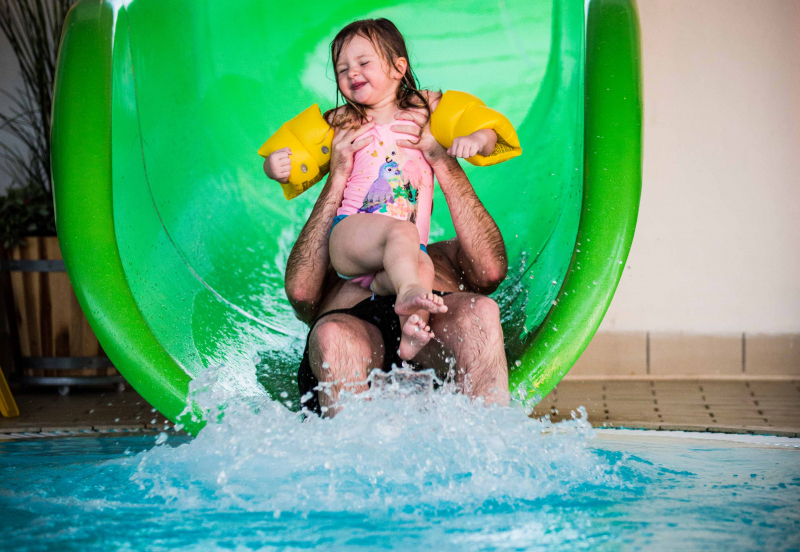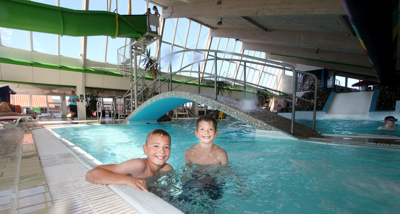 Das schöne Hallenbad bietet bei jedem Wetter herrliche Stunden. Wenn du Spaß im Wasser liebst, findest du hier die beliebte Rutsche, die sich aus dem Bad hinaus und wieder hinein windet, sowie ein Kinderbecken mit 29 Grad und ein Spaßbecken.
