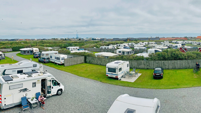 Gemütlicher Familienplatz im charmanten Fischerort Thyborøn. Der Platz liegt nur 300 Meter von der Nordsee entfernt – werfen Sie die Angel ins Wasser, lassen Sie den Drachen steigen oder genießen Sie ein erfrischendes Bad in der Nordsee.