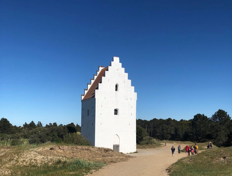 Oder Sct. Laurenti Kirche, wie der eigentliche Name lautet – eine Kirche, die, wie der Name schon sagt, im Laufe der Jahre vom Sand verschüttet wurde und 1795 außer Betrieb ging. Heute ist nur noch die Spitze der Kirche zu sehen.