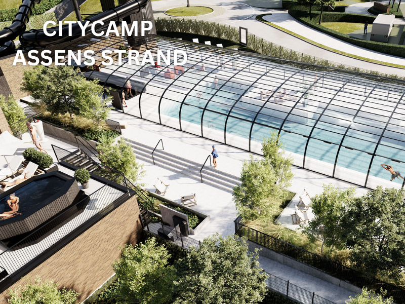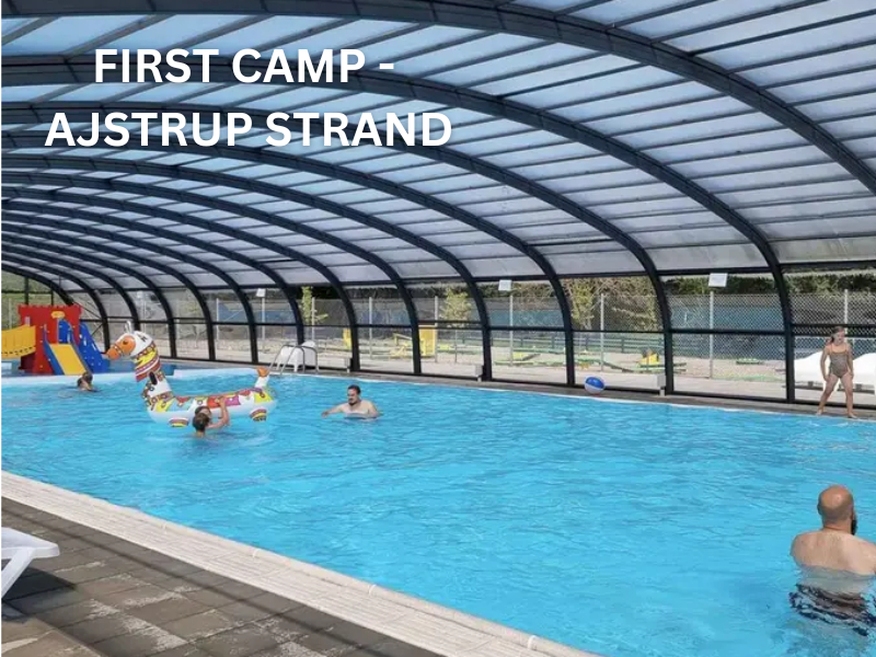 Einer der wenigen Campingplätze mit einem praktischen Überdachungssystem – wird es zu warm, kann geöffnet werden. Es gibt zwei riesige Rutschen (68 Meter und 48 Meter) für größere Kinder und Erwachsene sowie einen Kinderbereich mit Spielburg und kleinen Rutschen für die Kleinsten. Es gibt verschiedene Wassertiefen: 140 cm und ein Kinderbecken mit maximal 50 cm Tiefe.
