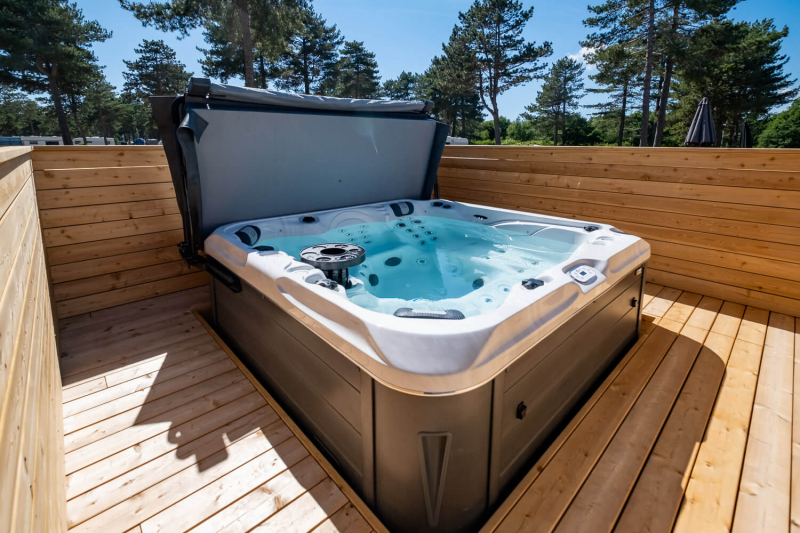- Privater Loungebereich mit eigenem Spa und Outdoor-Loungemöbeln: Entspanne und genieße den Luxus deines eigenen privaten Spas und Außenbereichs.