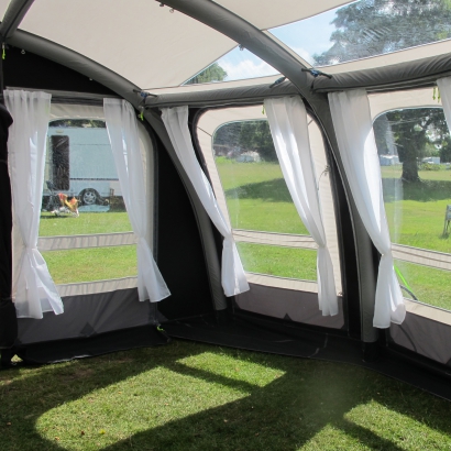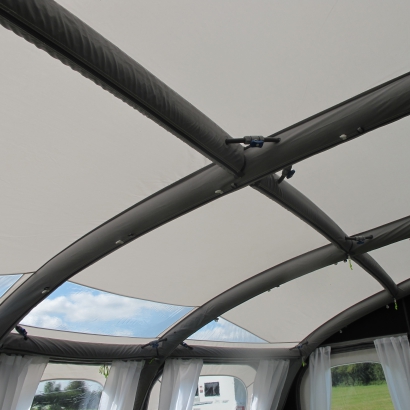 sie sind jetzt durch ein starkes, aufblasbares Luftgestänge „AirFrame“ ersetzt, das immer fest mit dem Vorzelt verbunden ist und in wenigen Minuten aufgepumpt wird.