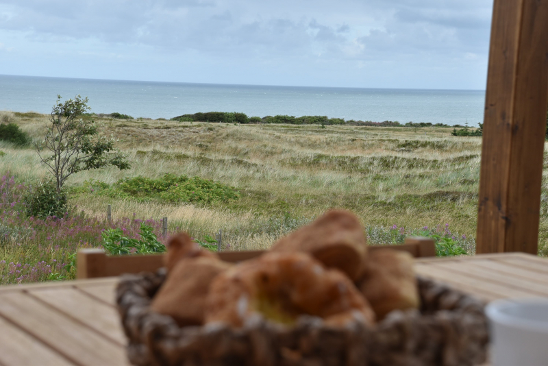 • Überdachte, nordseitige Terrasse mit Blick auf die Nordsee.