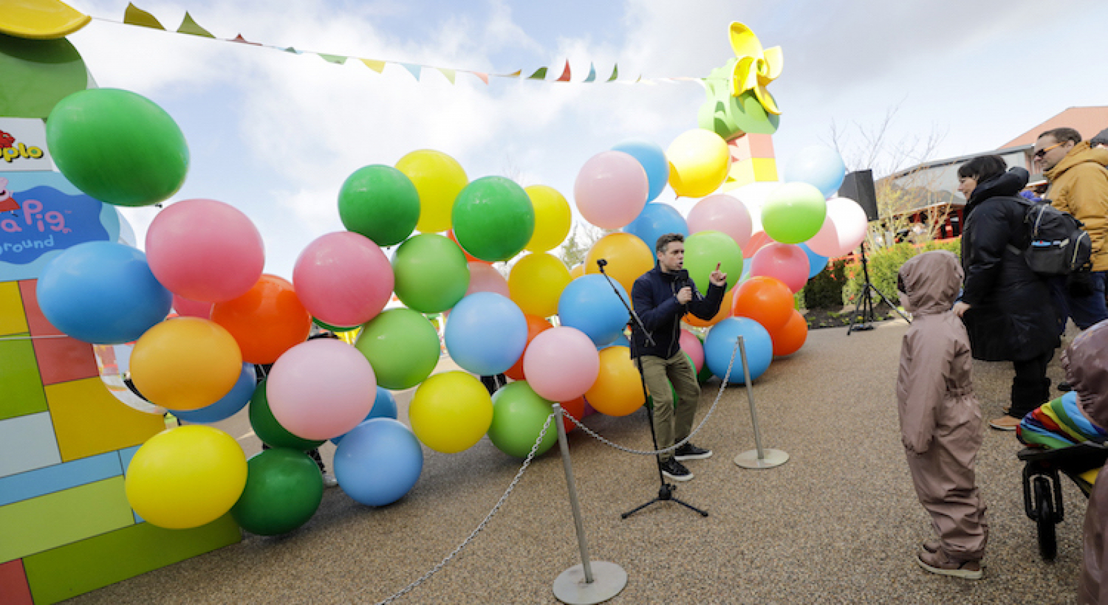 100 große Ballons verdeckten heute Morgen den Eingang zum brandneuen LEGO® DUPLO® Peppa Pig™ Bereich im LEGOLAND®, wo sich Kinder und Familien versammelt hatten, um zu den Allerersten zu gehören, die die diesjährige Neuheit im LEGOLAND erleben durften. Nach einem Countdown stoben die Ballons auseinander und die weltweit erste echte Kombination aus LEGO DUPLO und Peppa Pig wurde unter einem Himmel voller Seifenblasen enthüllt, während Kinder in das neue Areal stürmten, um Peppa Pig, ihre Familie und weitere Figuren aus der beliebten animierten TV-Serie zu treffen.