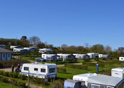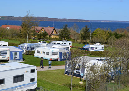 Der Platz ist in 4 Bereiche unterteilt, jeder mit seiner eigenen Schranke, was den Verkehr und Lärm verringert. Innerhalb der verschiedenen Bereiche ist der Platz aufgrund der Hanglage wieder in Plateaus unterteilt, sodass fast alle Plätze die Aussicht auf Båring Vig und Juelsminde usw. genießen können.