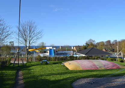 Baaringvig Feriepark - Skovlund Camping liegt an einem langen Hang, weshalb fast alle Plätze Meerblick haben, was den Platz zu einem sehr speziellen Campingplatz macht! Man spürt sofort die Ruhe und Gemütlichkeit, die sich einstellen, wenn man ausgepackt hat, die Heringe in den Boden gesteckt hat und sich in die Gartenmöbel gesetzt hat, um die Aussicht zu genießen.