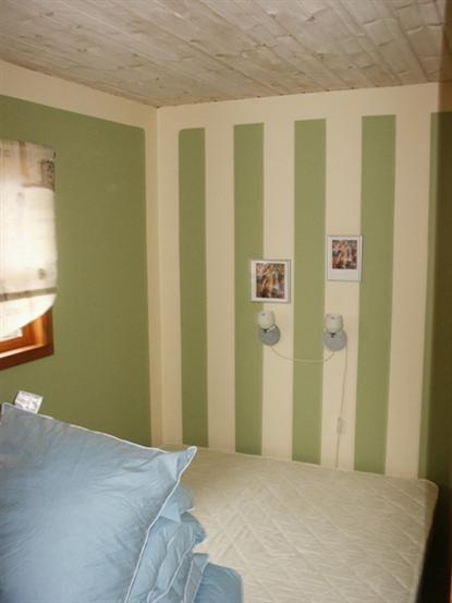 Das Schlafzimmer mit 3/4-Bett ist gut eingerichtet und bietet viel Stauraum. Das Badezimmer ist sehr klein. So klein, dass nicht zwei Personen gleichzeitig darin stehen können, und es bleibt nicht viel warmes Wasser übrig, selbst nach einer kurzen Dusche. Dafür gibt es einen guten Handtuchtrockner, der perfekt ist, wenn man aus dem märchenhaften Wasserpark kommt.