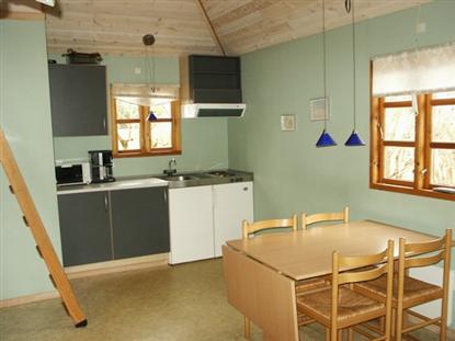 Die Hütte ist gut eingerichtet mit einem großen Aufenthaltsraum, in dem es genügend Platz für 6 Personen gibt. Es gibt Geschirr für 6 Personen, einen Mini-Ofen und alles, was man sonst noch in einer Küche benötigt.