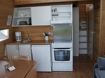 Die Küche hat eine angemessene Größe mit zugehörigem Herd und Kühlschrank mit Gefrierfach. Ansonsten alles, was man an Geschirr benötigt.