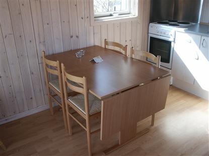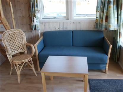 Die Bogense-Hütte ist mit einem großen Aufenthaltsraum ausgestattet, der einen Tisch für 6 Personen sowie ein Sofa bietet.