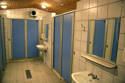 Die Einrichtungen sind in einem großen Gebäude zusammengefasst, das Toiletten, Küche, Information, Familienbaderäume, Wäscherei und einen kleinen Fernsehraum enthält. Insgesamt können die Einrichtungen im Verhältnis zur Größe des Platzes etwas knapp erscheinen, aber aufgrund von Schutzplänen usw. darf der Platz einfach nicht weiter ausgebaut werden. Während unseres Besuchs in der Hochsaison funktionierten die Einrichtungen gut - wir sahen nicht viele Warteschlangen.