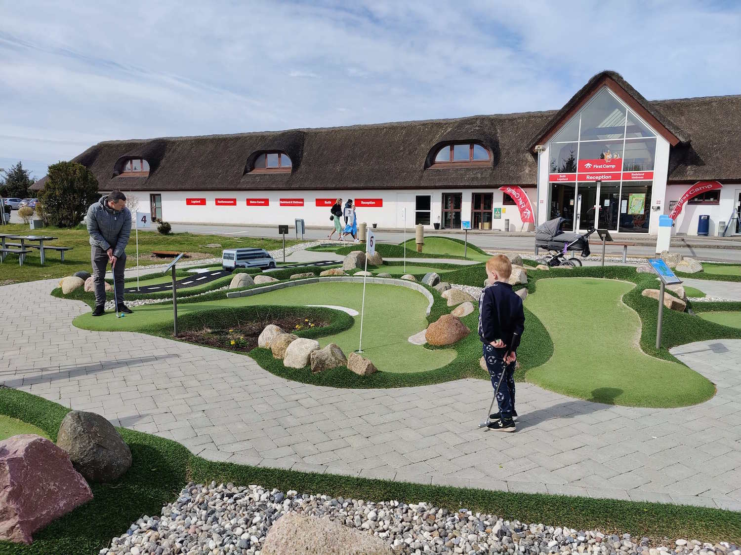 Draußen genossen wir eine Partie Minigolf auf dem neuen und schönen Minigolfplatz des Platzes.