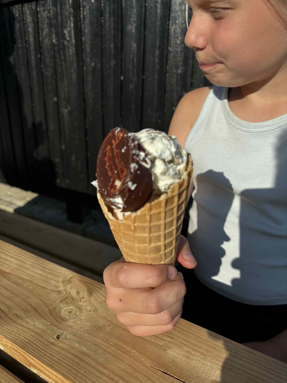 Natürlich haben wir auch das Eis getestet. Hier war es Klaus, der hinter der Theke stand, bereit, traditionelle Eiswaffeln zu servieren - mit Schaumkuss, wenn man möchte.