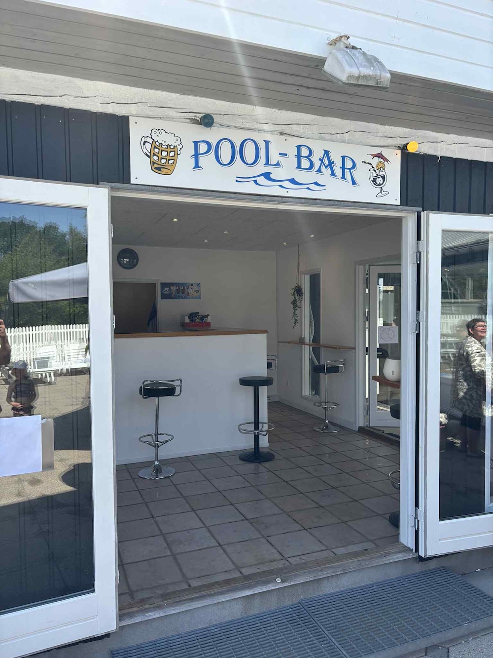 Wenn du selbst keine Lust hast, ins Wasser zu springen, kannst du dich rund um den Pool oder im Poolhof niederlassen, ebenso gibt es eine Poolbar mit eigenen Öffnungszeiten. Hier kannst du deinen Durst mit einem Slush-Eis, einem kalten Fassbier oder einer Limonade stillen - und es gibt auch Toast und andere leichte Snacks auf der Speisekarte.