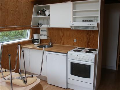 Die Küche hat eine angemessene Größe mit zugehörigem Herd und Kühlschrank mit Gefrierfach. Ansonsten alles, was man an Geschirr benötigt.