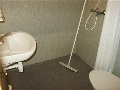 Im Toiletten-/Badezimmer gab es leider eine schiefe Wand, was dazu führte, dass der Duschvorhang nicht ganz dicht abschließen konnte.