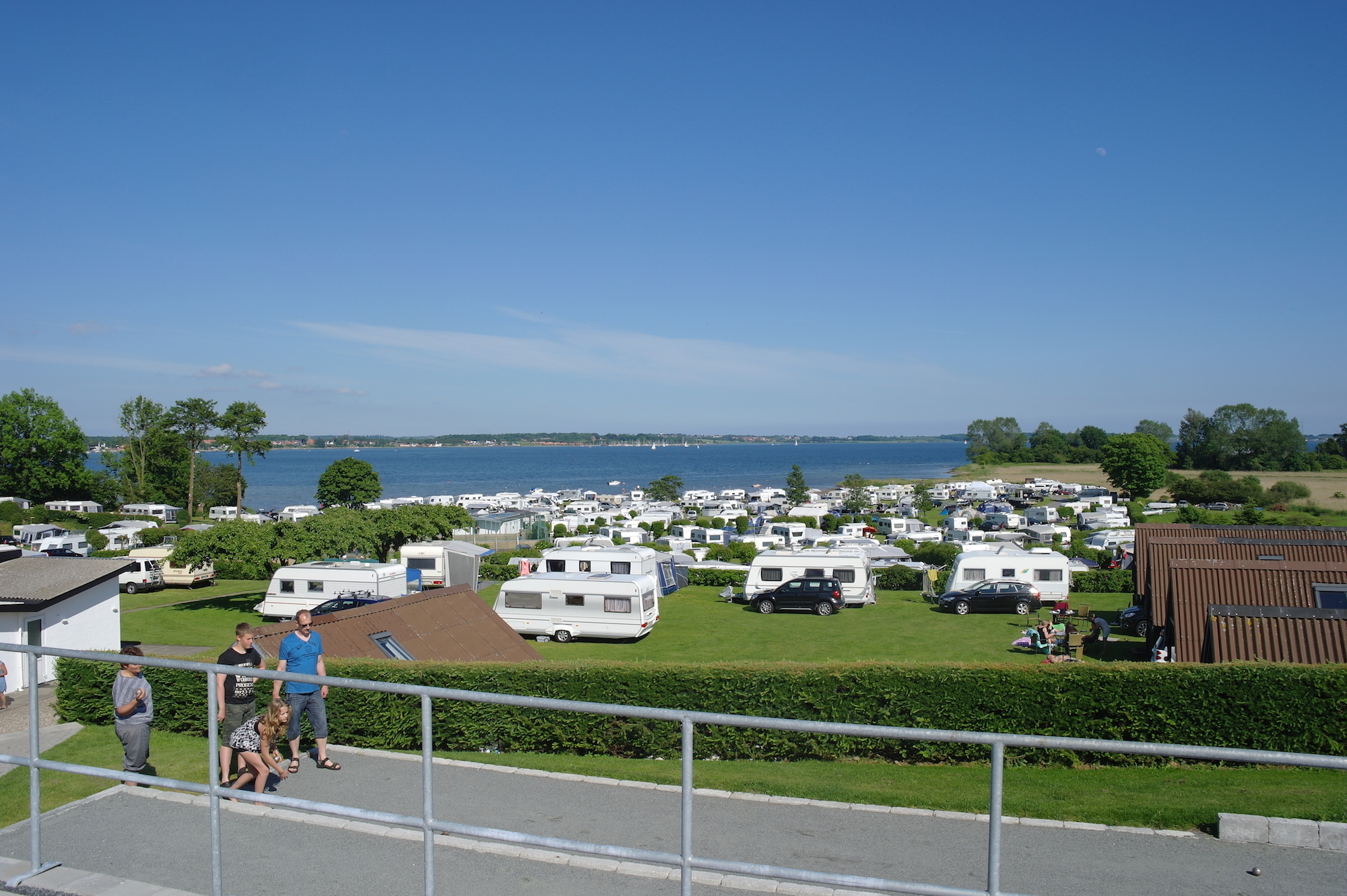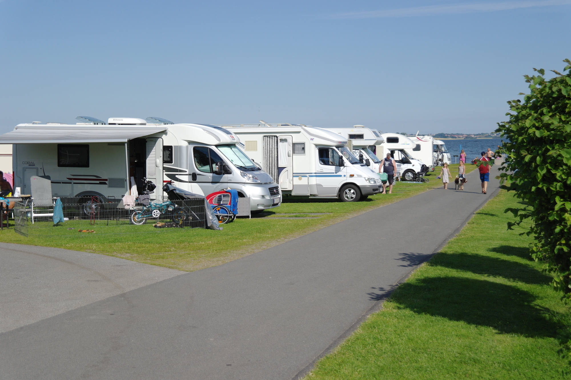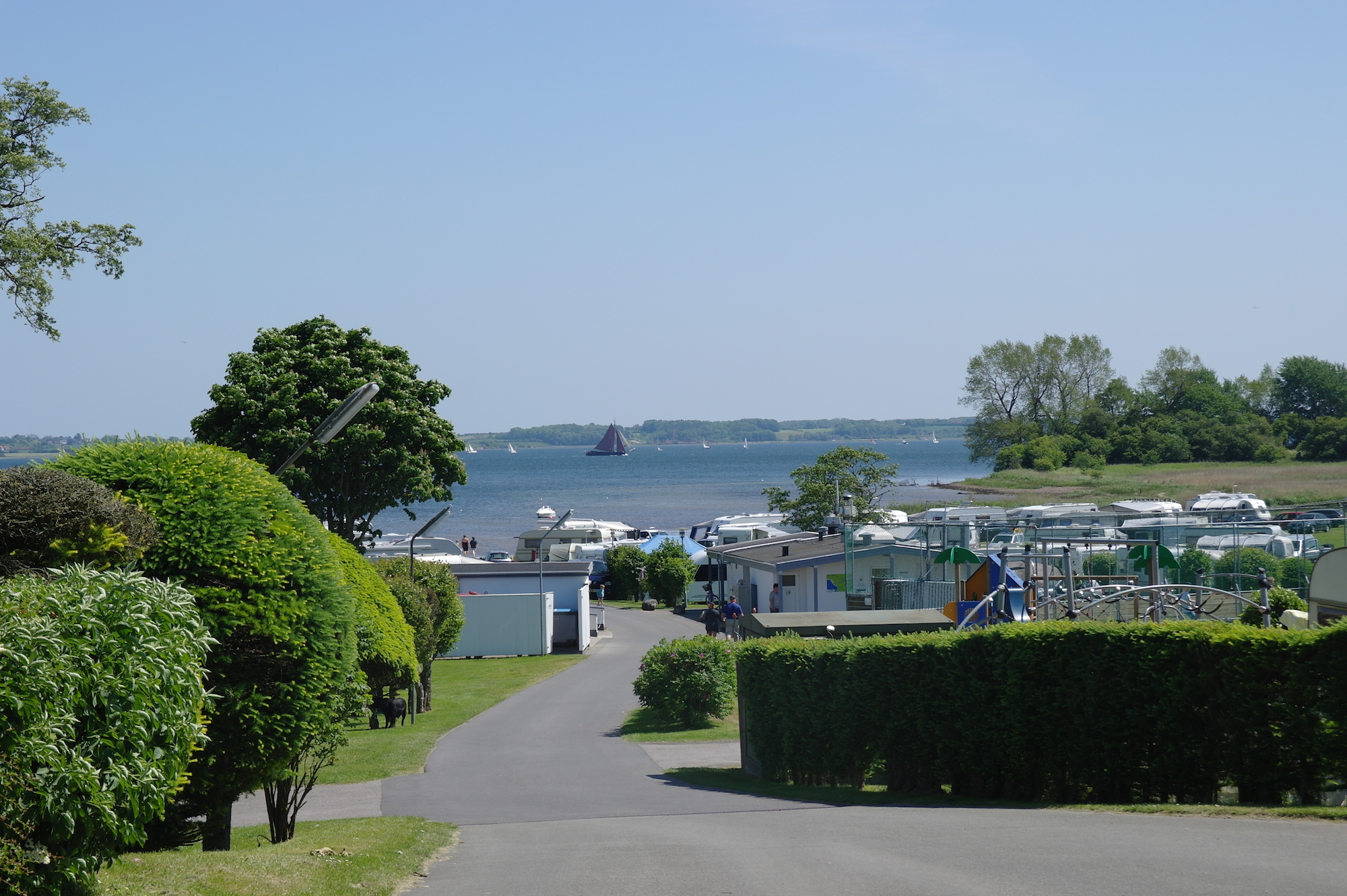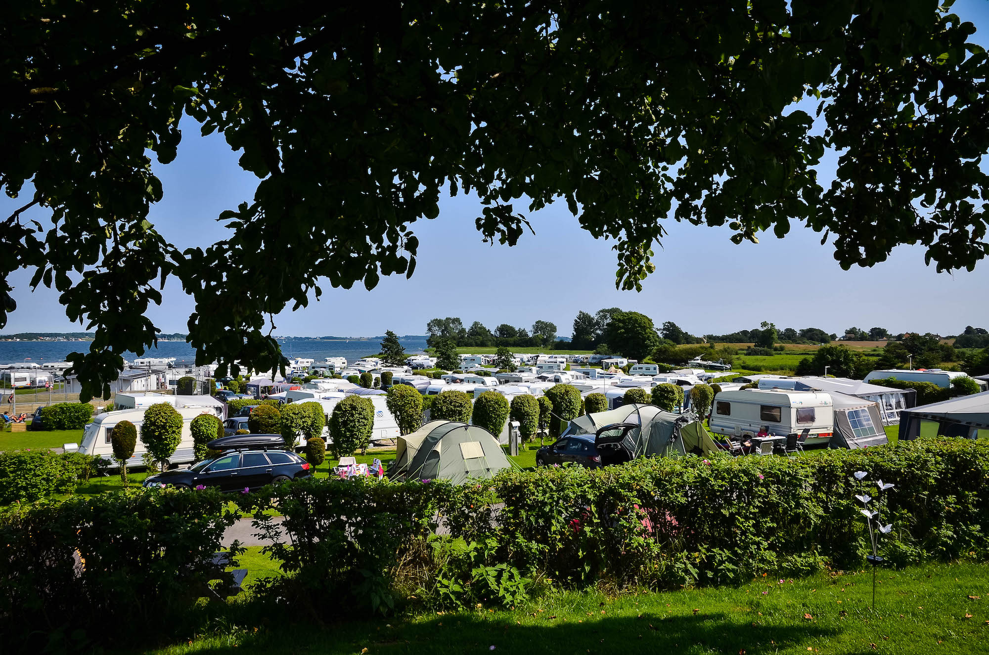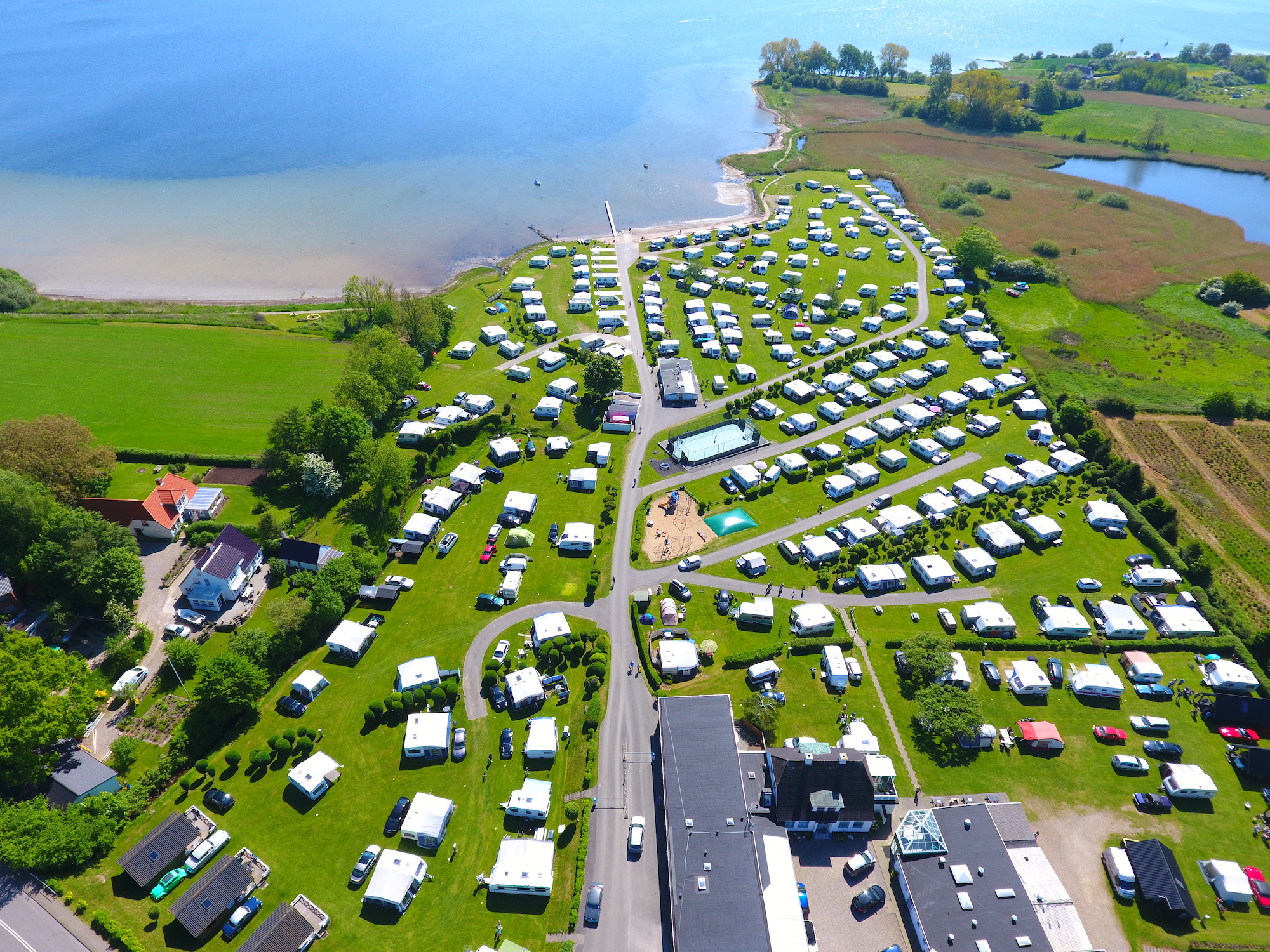 Der Platz liegt auf einem abfallenden Gelände, das an den eigenen kleinen Strand des Platzes am Flensburger Fjord grenzt.