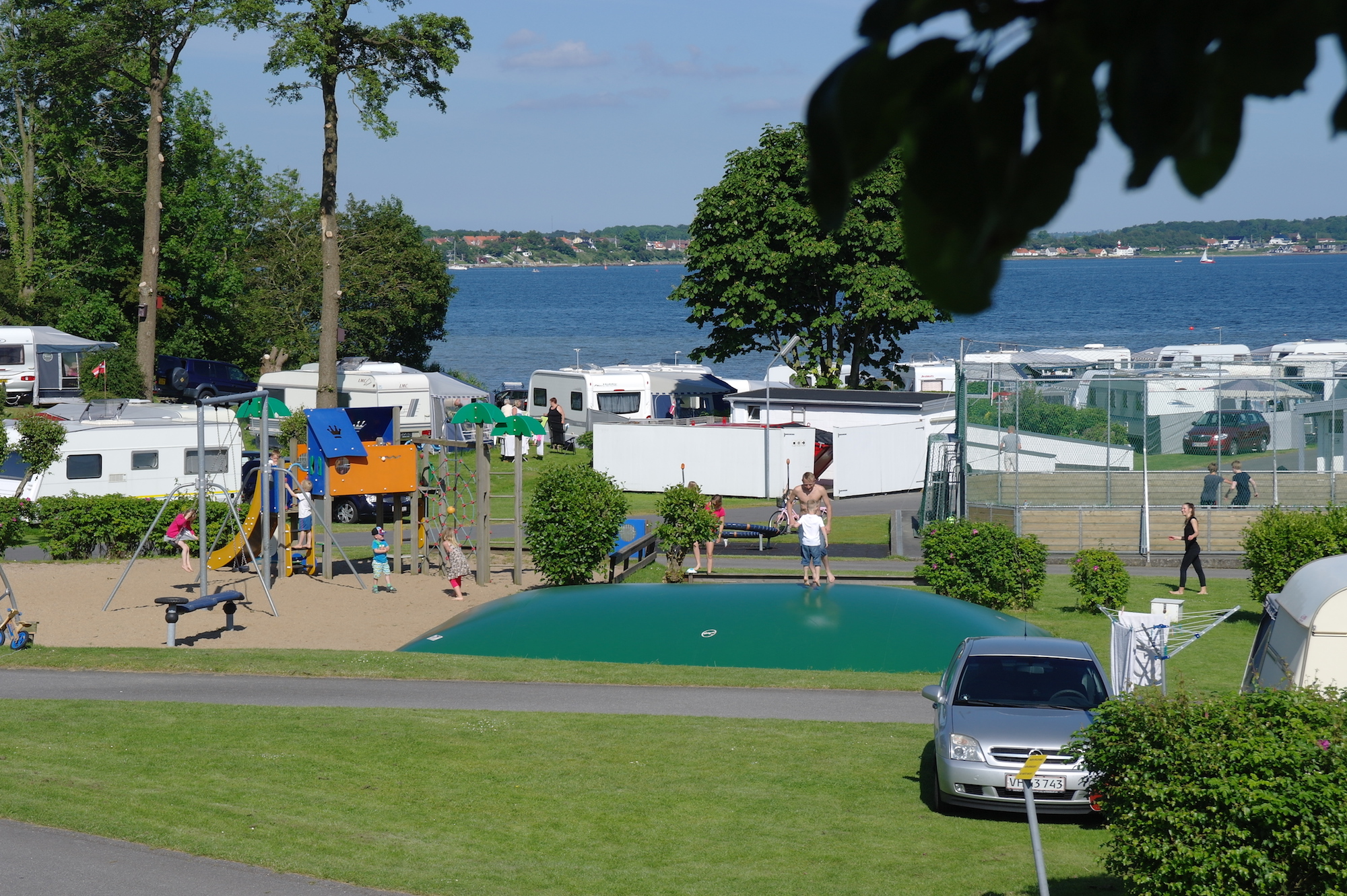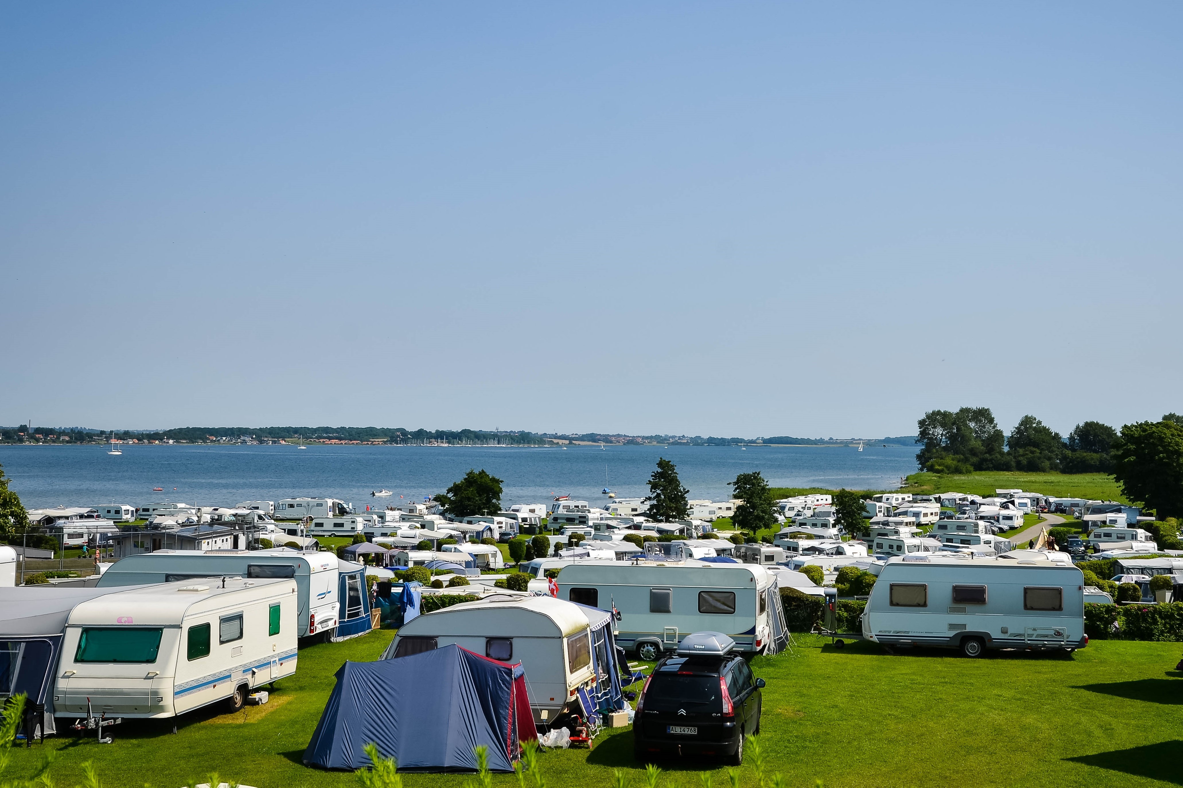 Stelle den Wohnwagen nur wenige Meter vom Wasser entfernt auf. Das ist möglich auf dem Lærkelunden Camping bei Gråsten - ein Platz mit Licht, Luft, Wasser und großartigen Einrichtungen.