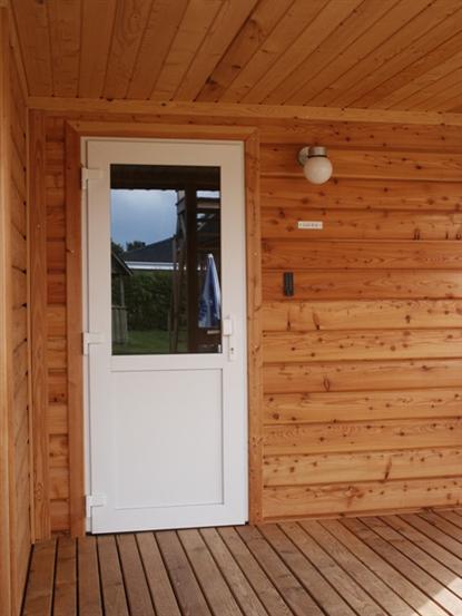 Auf der einen Seite der Hütte gibt es einen schönen Balkon, auf dem man den Sonnenuntergang genießen kann. Auf der anderen Seite gibt es eine schöne überdachte Terrasse mit dazugehörigen Gartenmöbeln.