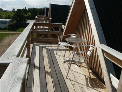 Ganz neuer Hüttentyp für die Hüttenpatrouille. Løgismose Camping hat im Laufe des Winters/Frühlings 6 neue Luxushütten mit einer Fläche von 25 m² und einem Balkon von 8 m² für 6 Personen errichtet.