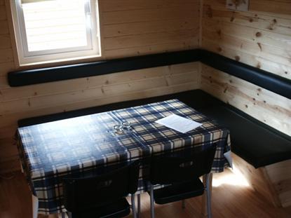 Die Einrichtung besteht aus einem schönen großen Aufenthaltsraum, der mit Bänken und Rückenlehnen ausgestattet ist, was viel Platz rund um den Tisch bietet. Es gibt einen Fernseher mit DVD-Player, sodass die ganze Familie zufrieden ist, wenn das Wetter nicht gut ist.