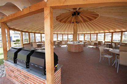 Auch auf dem Platz hat man den "Ribe-Geist" in die Details integriert - unter anderem in der großen Küche zentral auf dem Platz. Auch hier ist die Küche mit Stockwerk und schönen rustikalen Materialien errichtet. Direkt vor dem Gebäude wurde 2009 eine "runde" Außenküche mit vielen Sitzplätzen errichtet und wieder - im durchgängigen "Ribe-Geist".