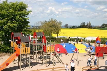Aber auch auf dem Platz kann man die Aktivitäten auf dem Wasser verfolgen - von fast allen Parzellen hat man einen Blick auf "ein kleines Stück mit Nass" am Horizont. Es sind auch nicht mehr als 2 Minuten zu Fuß, bis man am herrlichen Sandstrand steht, wo die Wasserrutsche wie ein Magnet auf die größeren Kinder wirkt.