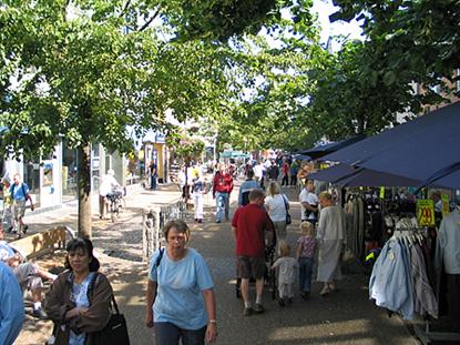 Eine kilometerlange und stimmungsvolle Fußgängerzone verzweigt sich vom Hafen der Stadt. Bekleidungsgeschäfte, Cafés und Fachgeschäfte liegen Seite an Seite mit dem bereits legendären "Ritz", wo die völlig unmusikalischen Sussi & Leo nun nach der Trennung von Skansen in Skagen auftreten.