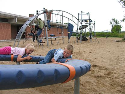 Vor jedem der beiden Servicegebäude des Platzes gibt es ein paar gute Spielplätze mit Klettergerüsten, Schaukeln, Wippen usw. Bei der Hauptgebäude des Platzes, mit Information, Kaufmann, Café, TV-Raum usw., befinden sich die Sportplätze und die großen Hüpfkissen.